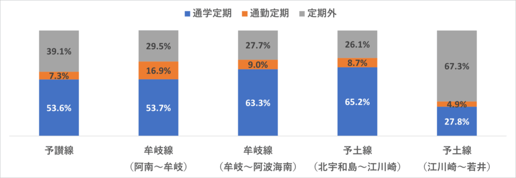 予讃線と予土線は、7~8割の人が「全く使わない」と回答。二次交通を含め、利便性の低さに対する意見が多かったようです。